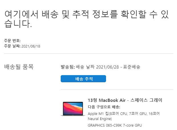 이날부터 나는 하루종일 맥북 배송이 언제될지 배송조회만 했다. 저 메일이 21일 월요일에 왔고, 빠른사람은 배송된지 이틀만에 받았다는 사람도 있어서 진짜 매 시간마다 확인한 것 같다.